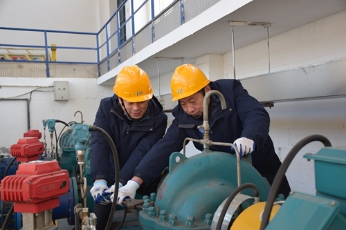 為保障嚴寒天氣下調水的安全穩(wěn)定,鄒平仁源周密部署、積極準備,全力加強預報預測、巡查防守和應急準備。做好清淤工作,組織工作人員開展了胡樓引黃泵站攔污柵調水前清淤,同時組織檢修人員對潛水軸流泵進行全面檢測維保,確保引水工作順利,引水水量達標。加強預報預測,中控室全面把控各項數據監(jiān)測,通過自動化調度和信息化系統,緊盯氣溫、水溫及進水泵站進水情況,保障泵站設備運行安全穩(wěn)定。保障巡查防守,加強對引黃渠道的巡查力度,安排專人每日往返60多公里的黃河干渠,進行河道巡查、測流等保障任務,并有序開展河道破冰除冰工作,及時處理因持續(xù)低溫導致的渠道過流能力下降等問題,保證渠道過水暢通,確保調水工作運行有序。