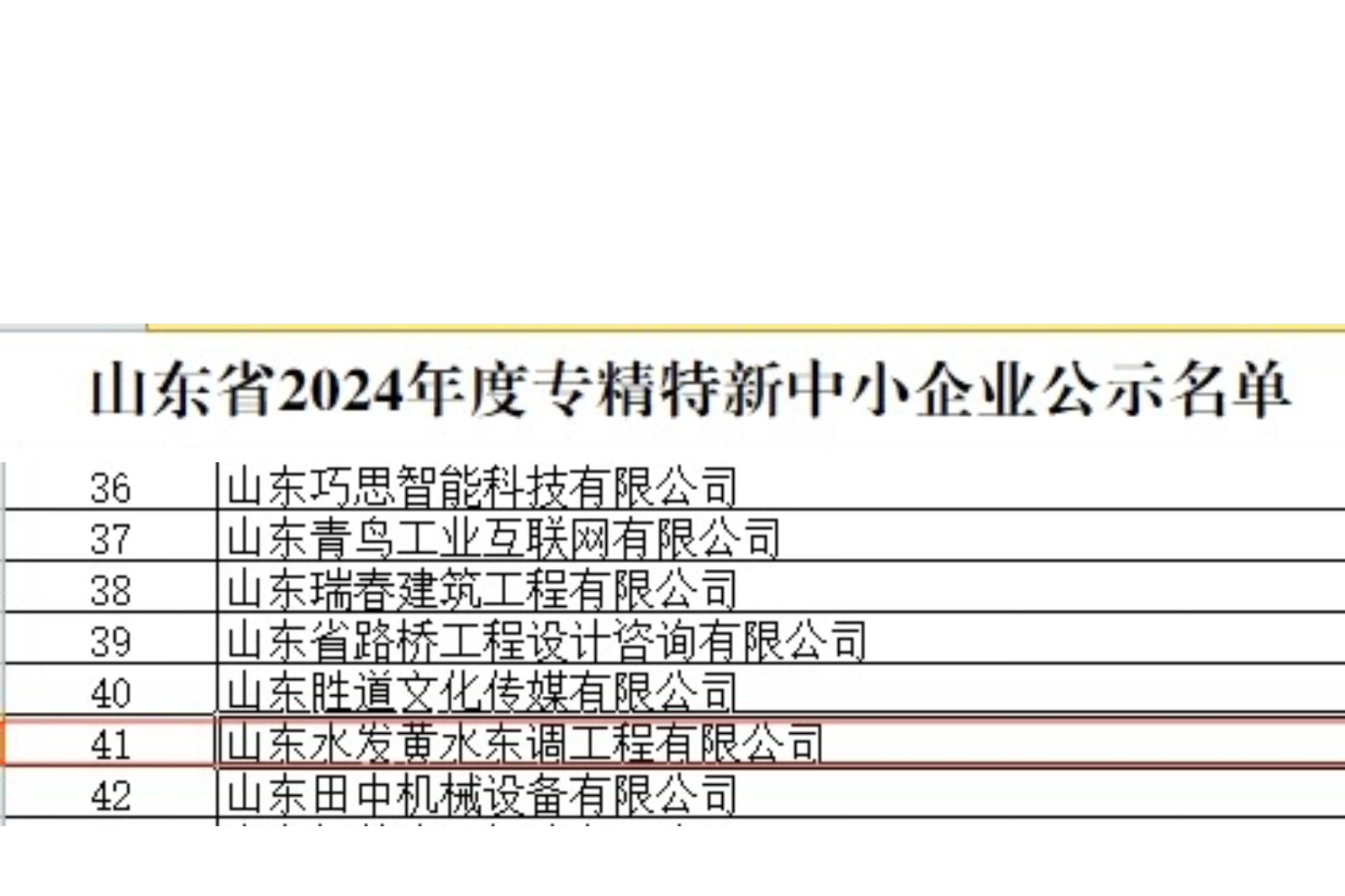 近日,山東省工業(yè)和信息化廳公示了山東省2024年度專精特新中小企業(yè)名單。經(jīng)自評申報、市級審核推薦、省級專家評審等程序,山東水發(fā)黃水東調(diào)工程有限公司進入公示名單,順利通過山東省2024年度專精特新中小企業(yè)認定。