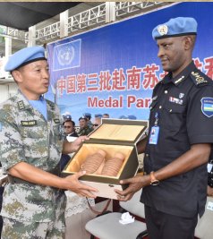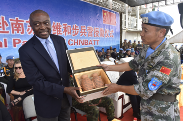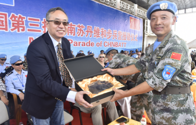 聯南蘇團維和部隊向國際友人贈彩陶助和諧