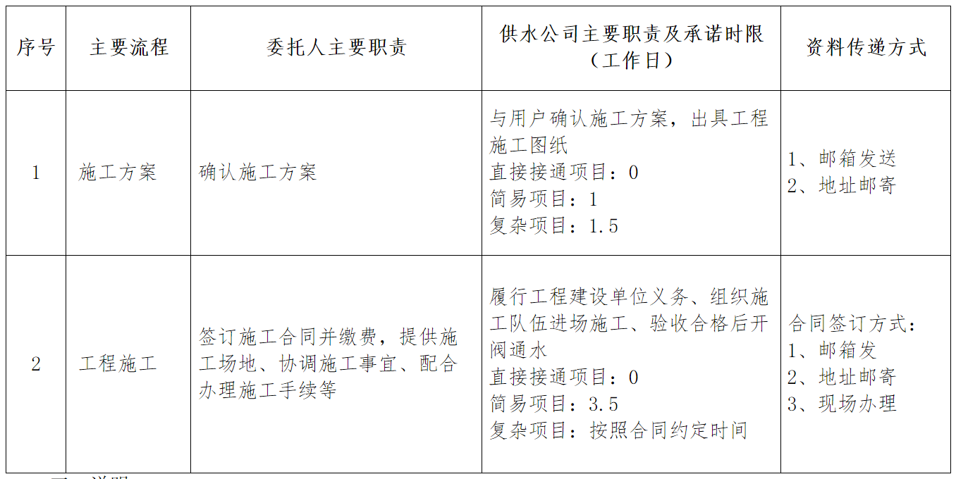 2、工程設(shè)計:設(shè)計承諾時限不包含用戶獲得用水方案后,與供水公司溝通反饋等環(huán)節(jié)。