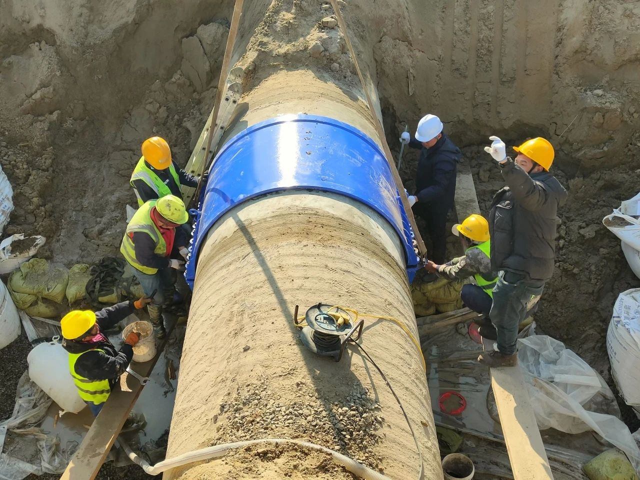 情況緊急,發(fā)現(xiàn)漏水后,工程管理部搶修人員以最快的速度奔赴現(xiàn)場,仔細(xì)檢查上下游閥門,憑借豐富經(jīng)驗和專業(yè)技術(shù),初步鎖定管線破損的位置與深度??蛻舴?wù)部第一時間將漏水情況向建設(shè)交通局報告,并積極協(xié)調(diào)現(xiàn)場開挖工作,爭分奪秒推動搶修進(jìn)程。與此同時,供水調(diào)度中心發(fā)揮著“智慧大腦”的作用,迅速調(diào)配惠澤水廠對第一、第三供水管線進(jìn)行精細(xì)調(diào)節(jié),精準(zhǔn)關(guān)閉第四供水管線破損位置的上下游閥門,一場保障居民用水不受影響的“戰(zhàn)役”就此打響。 搶修人員先對管體保護(hù)層進(jìn)行打磨,如同給受傷的“血管”清創(chuàng),再均勻地涂抹上搶修劑修補(bǔ)創(chuàng)口,最后用定制的哈夫節(jié)緊緊包裹。完成修復(fù)后,在管底鋪上厚厚的碎石墊層,給管道安上了一個穩(wěn)固的“床墊”,確保其在注水后穩(wěn)穩(wěn)當(dāng)當(dāng),不會沉降。這種方法相較于傳統(tǒng)的拔管、換管方式,不僅降低了成本,還大幅縮短了工期,為盡快恢復(fù)供水爭取了寶貴時間。 搶修人員全力以赴,輪流作業(yè),經(jīng)過近30個小時的連續(xù)奮戰(zhàn),終于完成修復(fù),管道再次流淌著清澈的水流,用戶的用水需求得到了堅實保障。 參與搶修的每一位員工都是守護(hù)用水安全的衛(wèi)士,他們用行動詮釋著水發(fā)人的擔(dān)當(dāng)精神,也收獲了廣大用戶的高度認(rèn)可。下一步,供水集團(tuán)將不斷提升服務(wù)質(zhì)量,為濱海區(qū)企業(yè)、居民用水保駕護(hù)航。